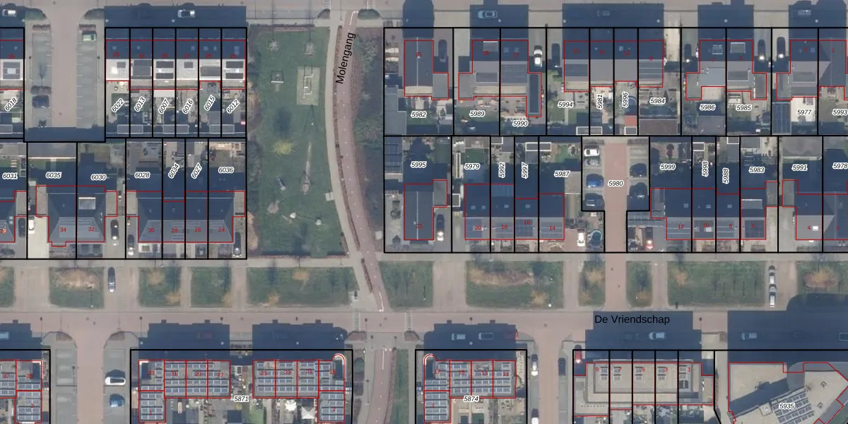 Het perceel waarop De Vriendschap 22 staat heeft een oppervlakte van 439 m². Dit is een groot perceel. De perceeloppervlakte wordt geregistreerd door het Kadaster. Gedetailleerde informatie over de maten van dit perceel kunt u vinden in het rapport Kadastrale kaart met maatvoering van De Vriendschap 22.