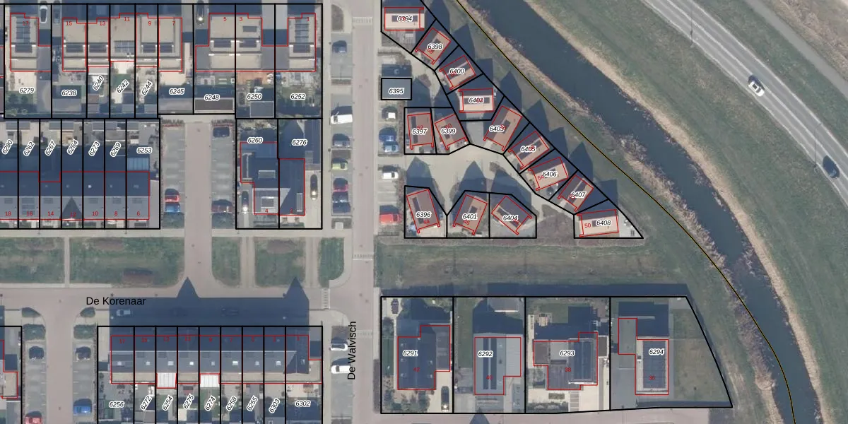 Het perceel waarop De Walvisch 44 staat heeft een oppervlakte van 105 m². Dit is een middelgroot perceel. De perceeloppervlakte wordt geregistreerd door het Kadaster. Gedetailleerde informatie over de maten van dit perceel kunt u vinden in het rapport Kadastrale kaart met maatvoering van De Walvisch 44.