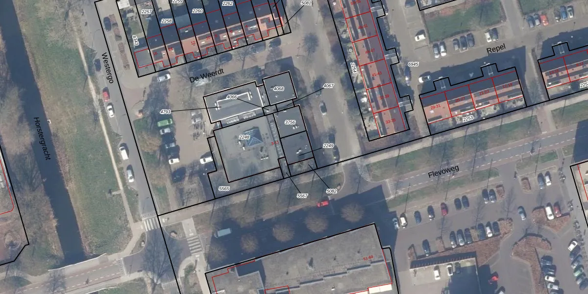 Het perceel waarop het adres ligt is ZWD03-A-2249. De afkorting 'ZWD03' staat voor kadastrale gemeente Zeewolde. Het perceel is kleiner dan gemiddeld in Zeewolde. Het perceel is 88 m² groot, terwijl het gemiddelde ligt op 1,9 ha. Het grootste perceel in de kadastrale gemeente is 6,16 km². Het kleinste perceel heeft een oppervlakte van 0 m². Er zijn geen andere adressen aanwezig op het perceel. De laatste wijziging in het de Basisregistratie Kadaster (BRK) was op 03-01-2006.