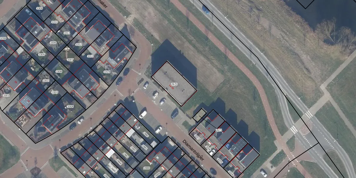 Diamantslijper 16 is gelegen op kadastraal perceel ZWD03E2670. Deze kadastrale aanduiding is uniek en wordt gebruikt door het Kadaster om eigendomsrechten en andere zakelijke rechten vast te leggen. Het perceel maakt onderdeel uit van de kadastrale gemeente Zeewolde.