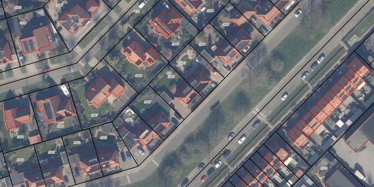 Het perceel waarop Distel 34 staat heeft een oppervlakte van 418 m². Dit is een groot perceel. De perceeloppervlakte wordt geregistreerd door het Kadaster. Gedetailleerde informatie over de maten van dit perceel kunt u vinden in het rapport Kadastrale kaart met maatvoering van Distel 34.