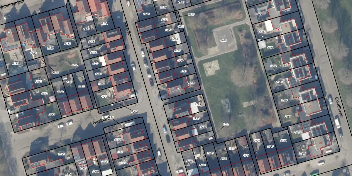 Gebruik de zoekbalk of klik op een perceel voor informatie over de adressen binnen dit perceel.
