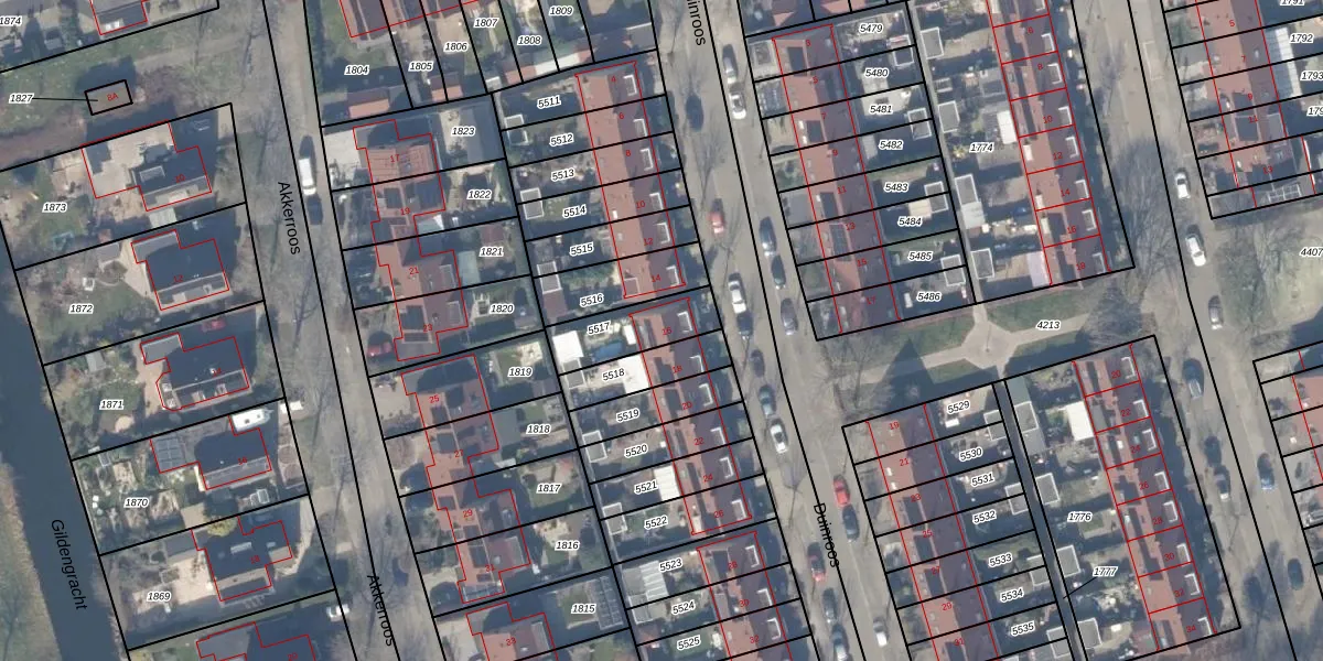 Gebruik de zoekbalk of klik op een perceel voor informatie over de adressen binnen dit perceel.