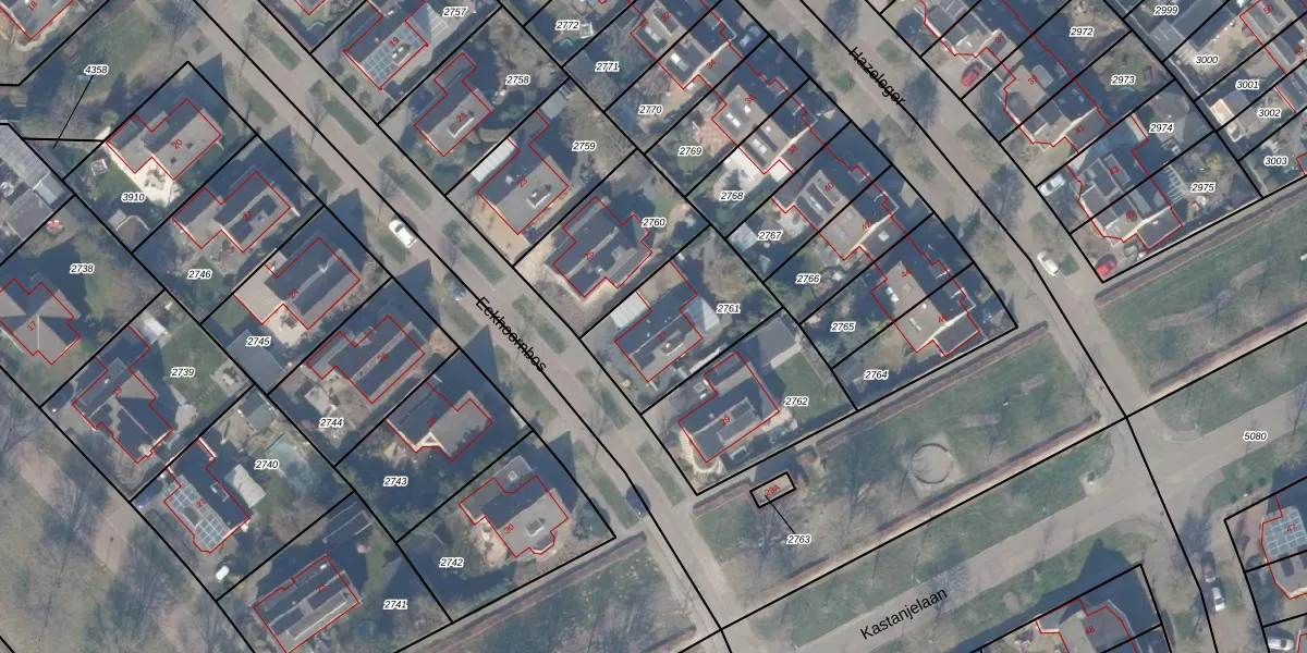 Het perceel waarop Eekhoornbos 27 staat heeft een oppervlakte van 431 m². Dit is een groot perceel. De perceeloppervlakte wordt geregistreerd door het Kadaster. Gedetailleerde informatie over de maten van dit perceel kunt u vinden in het rapport Kadastrale kaart met maatvoering van Eekhoornbos 27.
