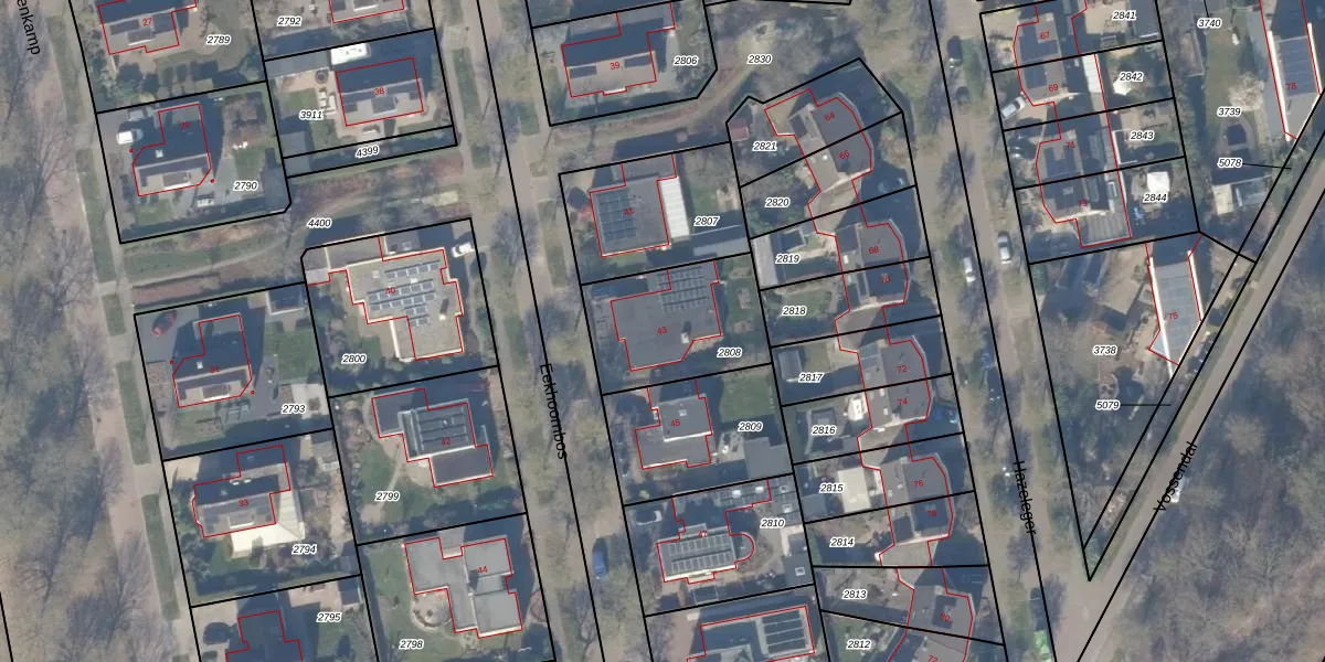 Het perceel waarop Eekhoornbos 43 staat heeft een oppervlakte van 446 m². Dit is een groot perceel. De perceeloppervlakte wordt geregistreerd door het Kadaster. Gedetailleerde informatie over de maten van dit perceel kunt u vinden in het rapport Kadastrale kaart met maatvoering van Eekhoornbos 43.