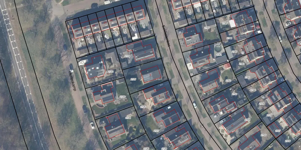 Het perceel waarop Eekhoornbos 6 staat heeft een oppervlakte van 438 m². Dit is een groot perceel. De perceeloppervlakte wordt geregistreerd door het Kadaster. Gedetailleerde informatie over de maten van dit perceel kunt u vinden in het rapport Kadastrale kaart met maatvoering van Eekhoornbos 6.