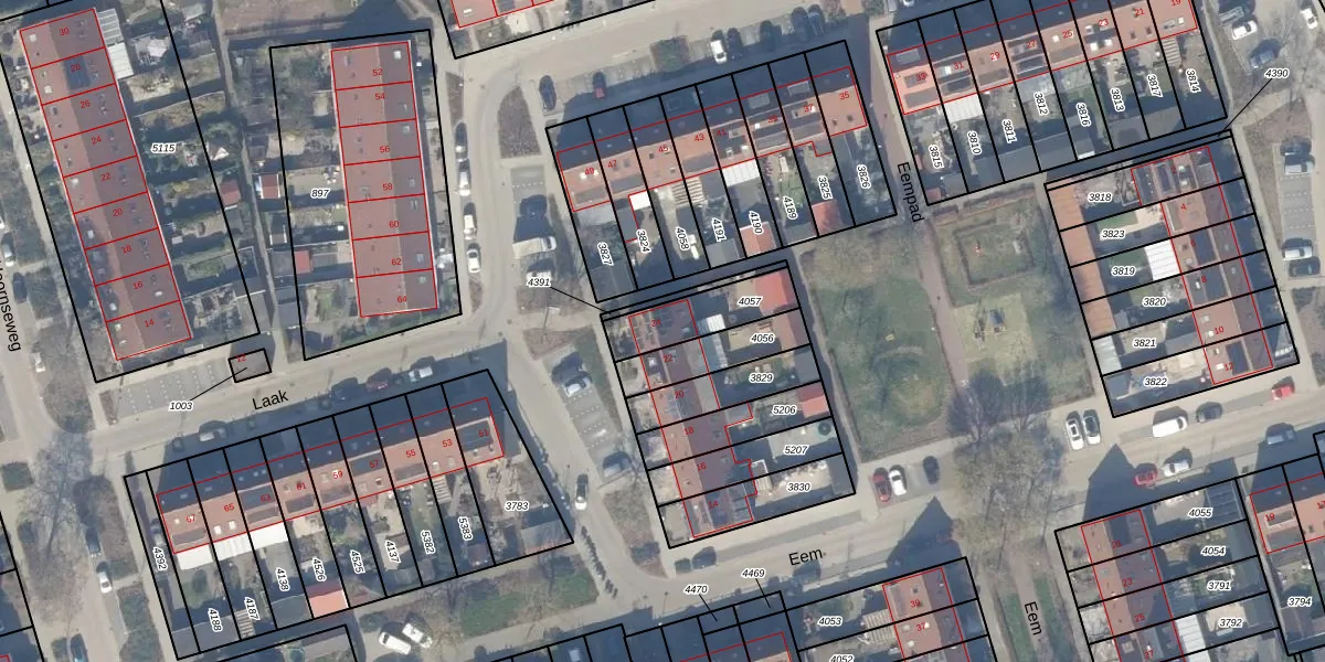 Het perceel waarop Eem 24 staat heeft een oppervlakte van 189 m². Dit is een middelgroot perceel. De perceeloppervlakte wordt geregistreerd door het Kadaster. Gedetailleerde informatie over de maten van dit perceel kunt u vinden in het rapport Kadastrale kaart met maatvoering van Eem 24.