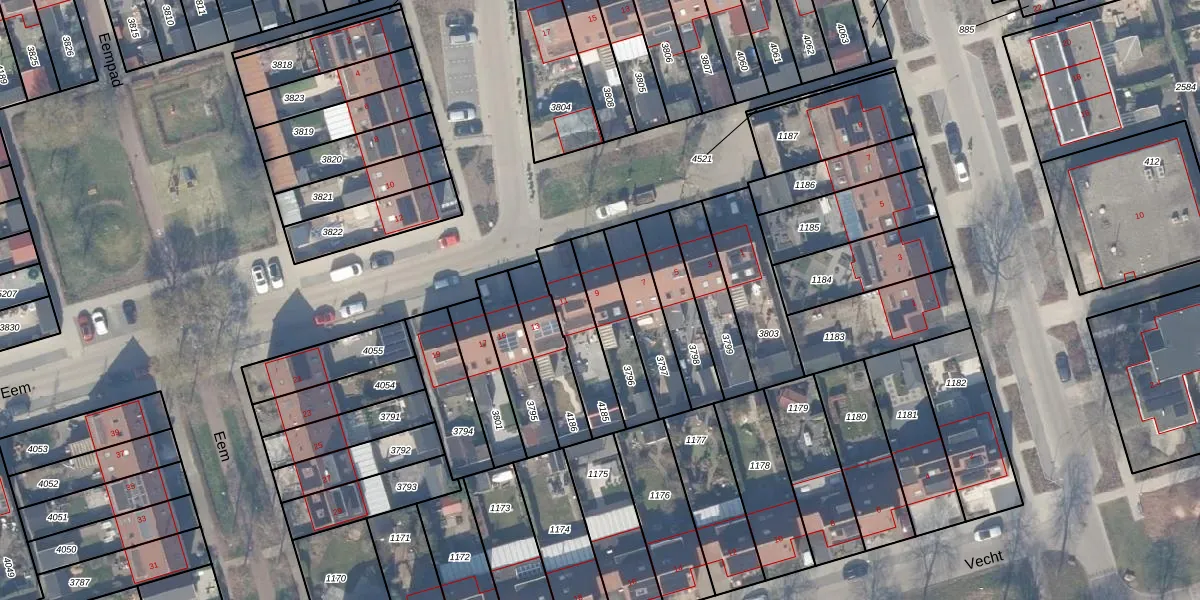 Gebruik de zoekbalk of klik op een perceel voor informatie over de adressen binnen dit perceel.