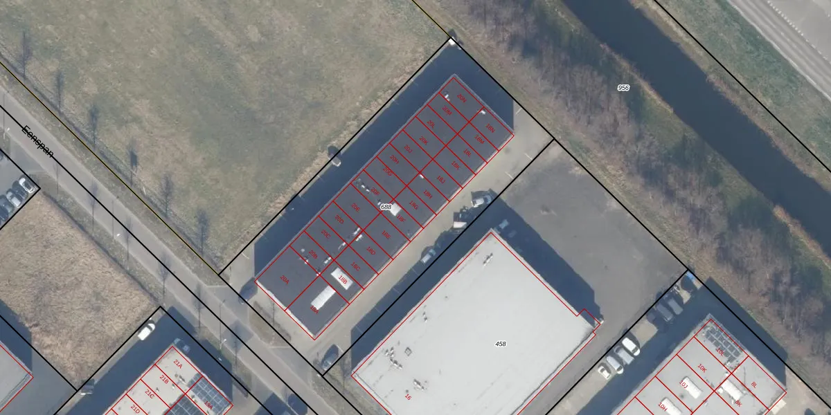 Het adres is gelegen op perceel 688 in de sectie F en de kadastrale gemeente Zeewolde. De kadastrale aanduiding is aldus ZWD03-F-688. Het perceel is kleiner dan gemiddeld in Zeewolde. Het perceel is 2795 m² groot, terwijl het gemiddelde ligt op 1,9 ha. Het grootste perceel in de kadastrale gemeente is 6,16 km². Het kleinste perceel heeft een oppervlakte van 0 m². Er zijn 26 adressen aanwezig op het perceel. De laatste wijziging in het de Basisregistratie Kadaster (BRK) was op 16-10-2025.