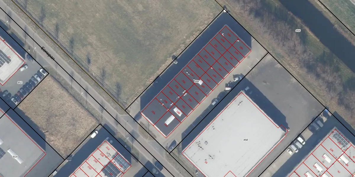 Het adres is gelegen op perceel 688 in de sectie F en de kadastrale gemeente Zeewolde. De kadastrale aanduiding is aldus ZWD03-F-688. Het perceel is kleiner dan gemiddeld in Zeewolde. Het perceel is 2795 m² groot, terwijl het gemiddelde ligt op 1,9 ha. Het kleinste perceel in de kadastrale gemeente is 0 m² groot. De grootste perceeloppervlakte is 6,16 km². Er zijn 26 adressen aanwezig op het perceel. De huidige grenzen van het perceel zijn digitaal in de Basisregistratie Kadaster (BRK) geregistreerd op 16-10-2025.