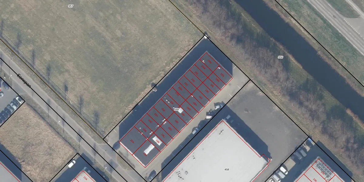 Het adres is gelegen op perceel 688 in de sectie F en de kadastrale gemeente Zeewolde. De kadastrale aanduiding is aldus ZWD03-F-688. Het perceel is kleiner dan gemiddeld in Zeewolde. Het perceel is 2795 m² groot, terwijl het gemiddelde ligt op 1,9 ha. Het kleinste perceel in de kadastrale gemeente is 0 m² groot. De grootste perceeloppervlakte is 6,16 km². Op het perceel zijn 26 adressen aanwezig. De huidige grenzen van het perceel zijn digitaal in de Basisregistratie Kadaster (BRK) geregistreerd op 16-10-2025.