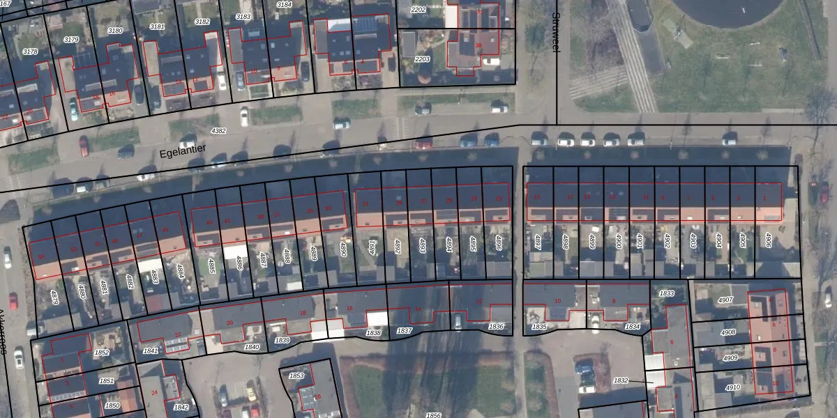 Het perceel waarop Egelantier 27 staat heeft een oppervlakte van 162 m². Dit is een middelgroot perceel. De perceeloppervlakte wordt geregistreerd door het Kadaster. Gedetailleerde informatie over de maten van dit perceel kunt u vinden in het rapport Kadastrale kaart met maatvoering van Egelantier 27.