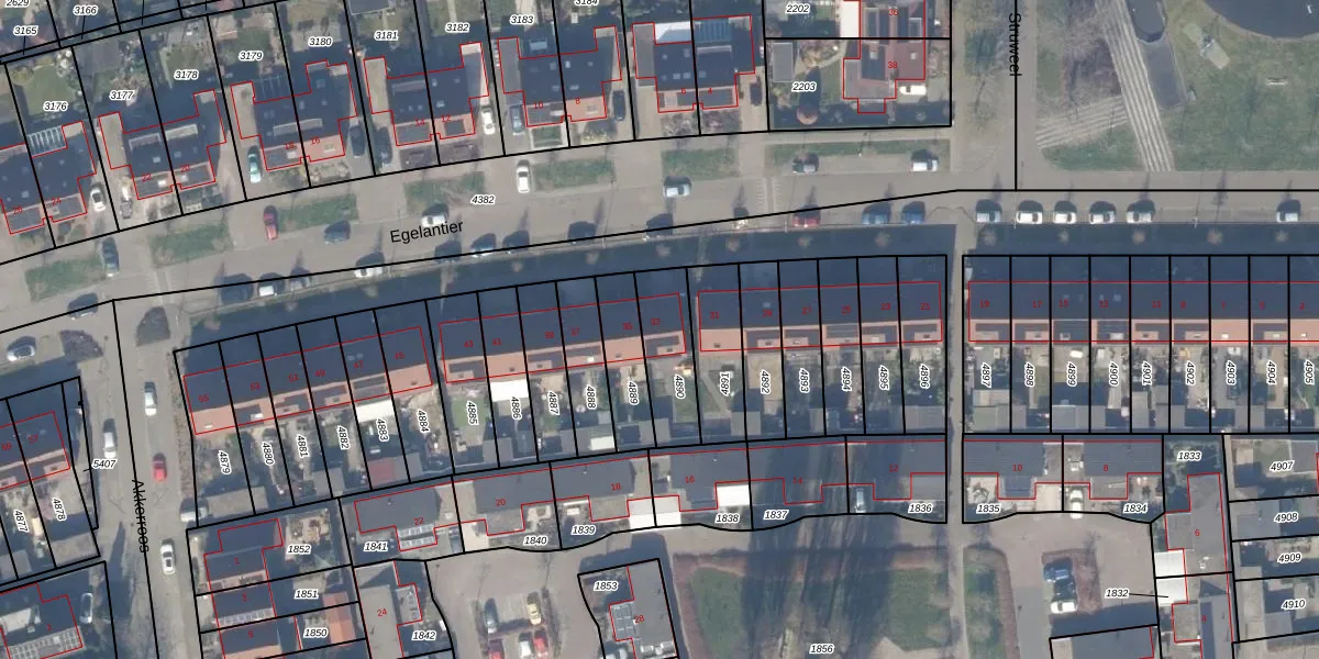 Het perceel waarop Egelantier 33 staat heeft een oppervlakte van 200 m². Dit is een middelgroot perceel. De perceeloppervlakte wordt geregistreerd door het Kadaster. Gedetailleerde informatie over de maten van dit perceel kunt u vinden in het rapport Kadastrale kaart met maatvoering van Egelantier 33.