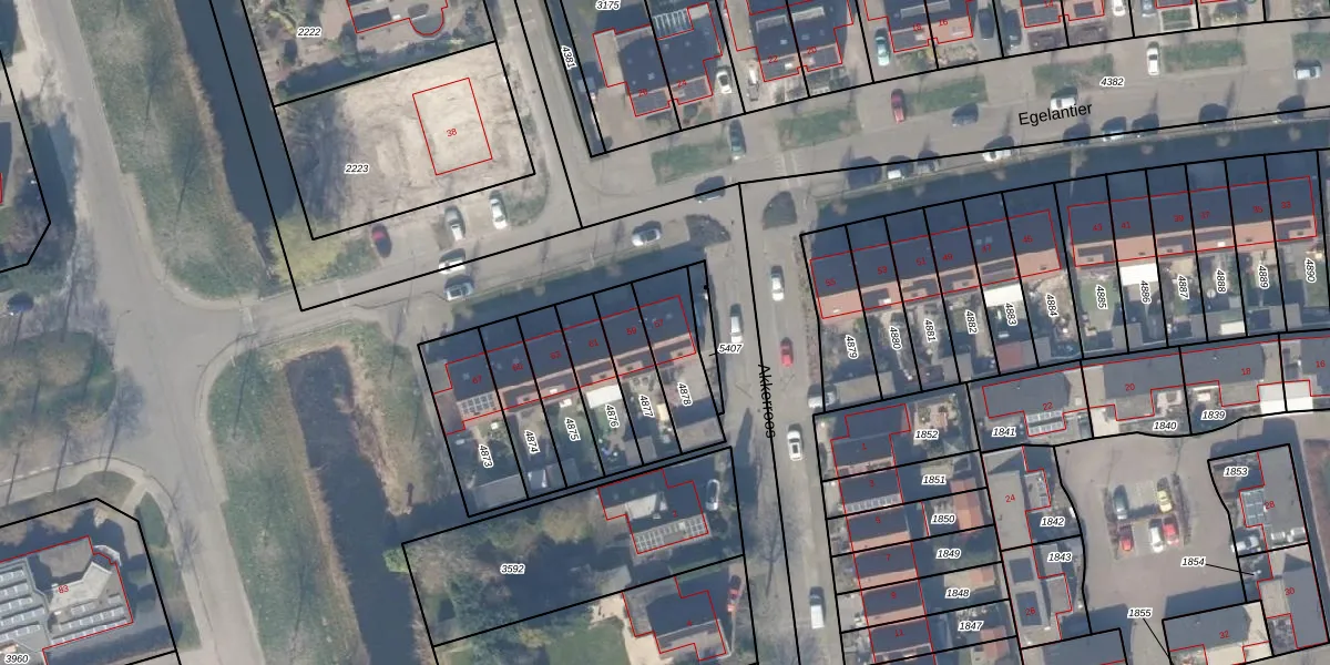Het perceel waarop Egelantier 57 staat heeft een oppervlakte van 197 m². Dit is een middelgroot perceel. De perceeloppervlakte wordt geregistreerd door het Kadaster. Gedetailleerde informatie over de maten van dit perceel kunt u vinden in het rapport Kadastrale kaart met maatvoering van Egelantier 57.