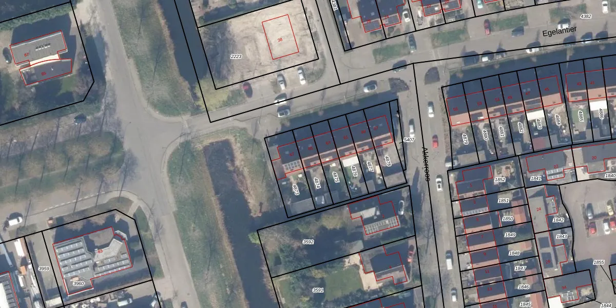 Het perceel waarop Egelantier 65 staat heeft een oppervlakte van 162 m². Dit is een middelgroot perceel. De perceeloppervlakte wordt geregistreerd door het Kadaster. Gedetailleerde informatie over de maten van dit perceel kunt u vinden in het rapport Kadastrale kaart met maatvoering van Egelantier 65.