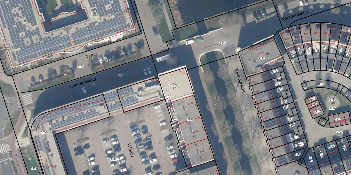 Het perceel waarop Eilandgracht 39 staat heeft een oppervlakte van 927 m². Dit is een groot perceel. De perceeloppervlakte wordt geregistreerd door het Kadaster. Gedetailleerde informatie over de maten van dit perceel kunt u vinden in het rapport Kadastrale kaart met maatvoering van Eilandgracht 39.