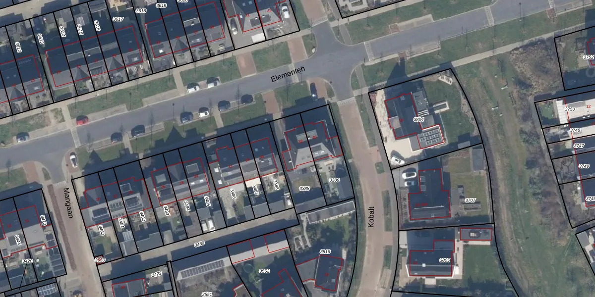 Het perceel waarop Elementen 38 staat heeft een oppervlakte van 349 m². Dit is een groot perceel. De perceeloppervlakte wordt geregistreerd door het Kadaster. Gedetailleerde informatie over de maten van dit perceel kunt u vinden in het rapport Kadastrale kaart met maatvoering van Elementen 38.