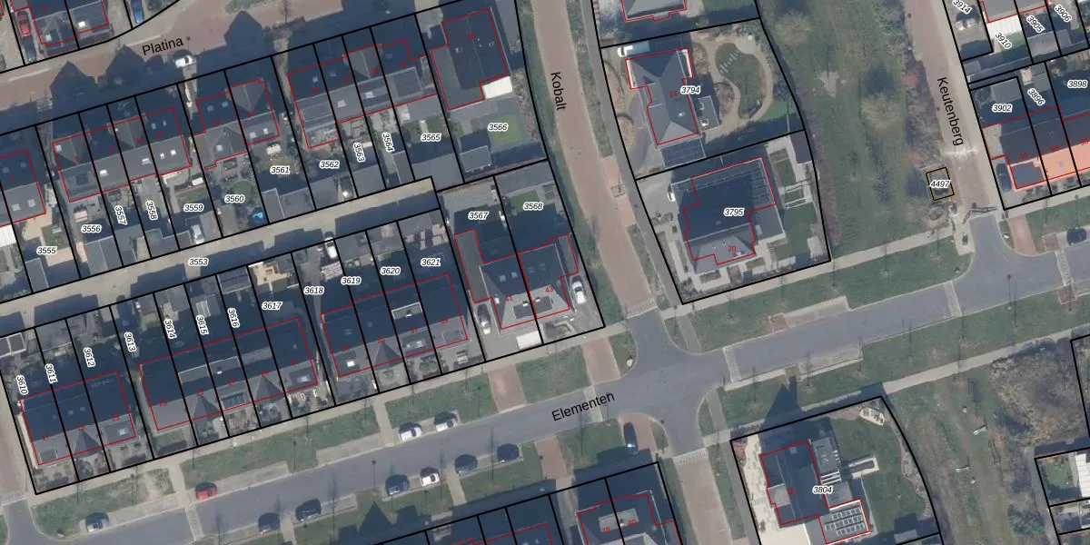 Het perceel waarop Elementen 43 staat heeft een oppervlakte van 362 m². Dit is een groot perceel. De perceeloppervlakte wordt geregistreerd door het Kadaster. Gedetailleerde informatie over de maten van dit perceel kunt u vinden in het rapport Kadastrale kaart met maatvoering van Elementen 43.