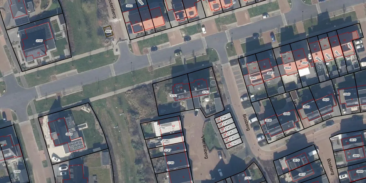 Het adres is gelegen op perceel 3752 in de sectie E en de kadastrale gemeente Zeewolde. De kadastrale aanduiding is aldus ZWD03-E-3752. De gemiddelde perceelgrootte in Zeewolde is 1,9 ha. Dit perceel is kleiner: de perceeloppervlakte bedraagt 375 m². De grootste perceeloppervlakte in de kadastrale gemeente is 6,16 km². De kleinste oppervlakte bedraagt 0 m². Er zijn geen andere adressen aanwezig op het perceel. In de Basisregistratie Kadaster (BRK) werden de grenzen van het perceel geregistreerd op 26-10-2017.