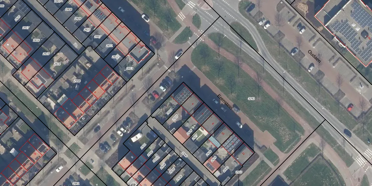 Gebruik de zoekbalk of klik op een perceel voor informatie over de adressen binnen dit perceel.
