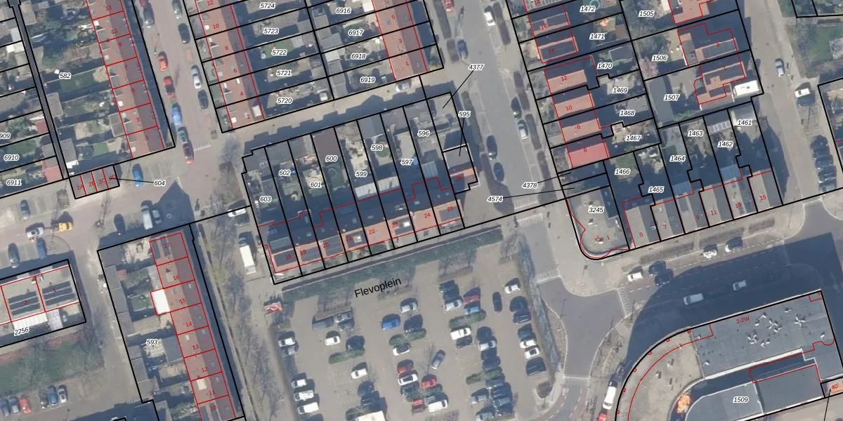 Het perceel waarop Flevoplein 24 staat heeft een oppervlakte van 182 m². Dit is een middelgroot perceel. De perceeloppervlakte wordt geregistreerd door het Kadaster. Gedetailleerde informatie over de maten van dit perceel kunt u vinden in het rapport Kadastrale kaart met maatvoering van Flevoplein 24.