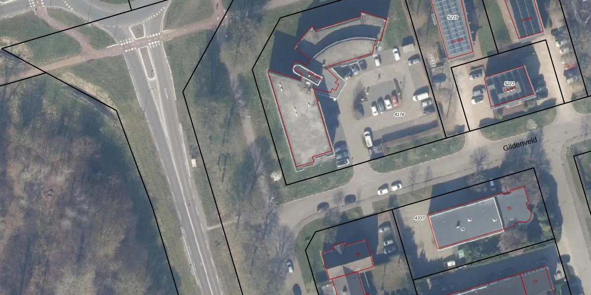 Het perceel waarop Gildenveld 22-F staat heeft een oppervlakte van 3005 m². Dit is een zeer groot perceel. De perceeloppervlakte wordt geregistreerd door het Kadaster. Gedetailleerde informatie over de maten van dit perceel kunt u vinden in het rapport Kadastrale kaart met maatvoering van Gildenveld 22-F.