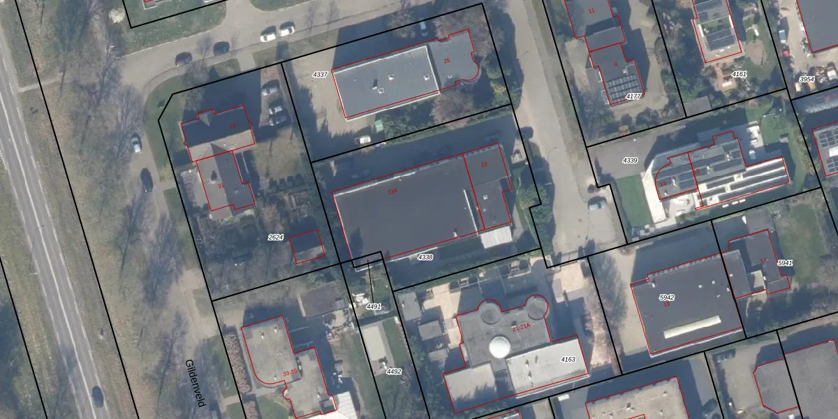 Gildenveld 23-A is gelegen op kadastraal perceel ZWD03A4338. Deze kadastrale aanduiding is uniek en wordt gebruikt door het Kadaster om eigendomsrechten en andere zakelijke rechten vast te leggen. Het perceel maakt onderdeel uit van de kadastrale gemeente Zeewolde.