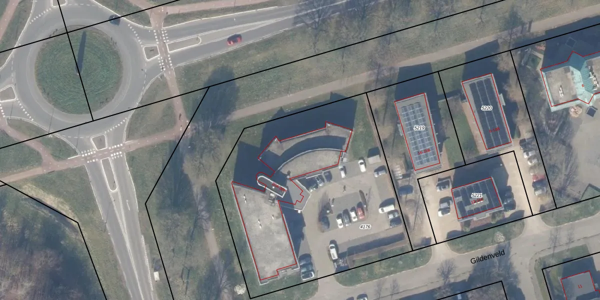 Het perceel waarop Gildenveld 24-D staat heeft een oppervlakte van 3005 m². Dit is een zeer groot perceel. De perceeloppervlakte wordt geregistreerd door het Kadaster. Gedetailleerde informatie over de maten van dit perceel kunt u vinden in het rapport Kadastrale kaart met maatvoering van Gildenveld 24-D.