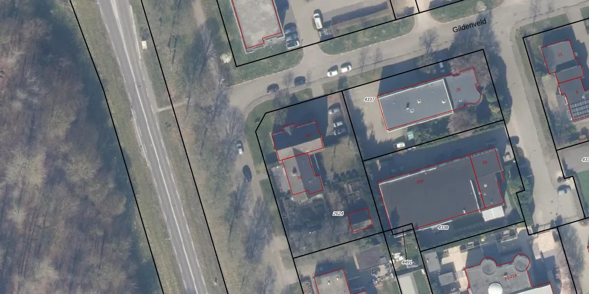 Het perceel waarop Gildenveld 29 staat heeft een oppervlakte van 1588 m². Dit is een zeer groot perceel. De perceeloppervlakte wordt geregistreerd door het Kadaster. Gedetailleerde informatie over de maten van dit perceel kunt u vinden in het rapport Kadastrale kaart met maatvoering van Gildenveld 29.