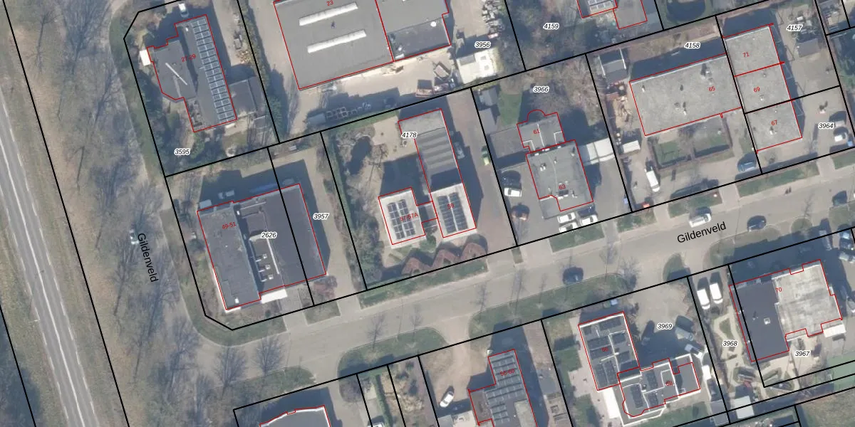 Het perceel waarop Gildenveld 57 staat heeft een oppervlakte van 1421 m². Dit is een zeer groot perceel. De perceeloppervlakte wordt geregistreerd door het Kadaster. Gedetailleerde informatie over de maten van dit perceel kunt u vinden in het rapport Kadastrale kaart met maatvoering van Gildenveld 57.