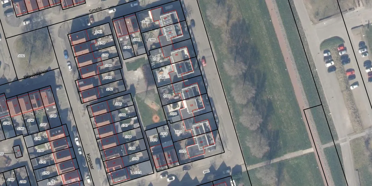 Het perceel waarop het adres ligt is ZWD03-A-2369. De afkorting 'ZWD03' staat voor kadastrale gemeente Zeewolde. Het perceel is kleiner dan gemiddeld in Zeewolde. Het perceel is 255 m² groot, terwijl het gemiddelde ligt op 1,9 ha. Het kleinste perceel in de kadastrale gemeente is 0 m² groot. De grootste perceeloppervlakte is 6,16 km². Dit is het enige adres dat aanwezig is op het perceel. De laatste wijziging in het de Basisregistratie Kadaster (BRK) was op 15-02-2000.