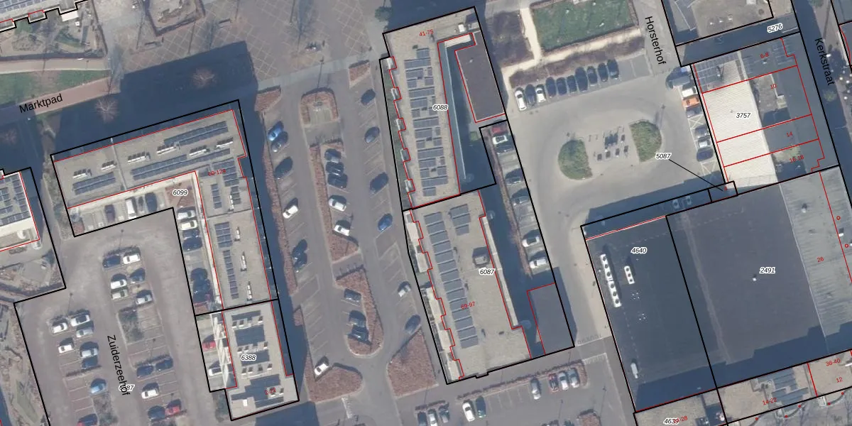 Het adres is gelegen op perceel 6087 in de sectie A en de kadastrale gemeente Zeewolde. De kadastrale aanduiding is aldus ZWD03-A-6087. Het perceel is kleiner dan gemiddeld in Zeewolde. Het perceel is 1390 m² groot, terwijl het gemiddelde ligt op 1,9 ha. Het grootste perceel in de kadastrale gemeente is 6,16 km². Het kleinste perceel heeft een oppervlakte van 0 m². Op het perceel zijn 15 adressen aanwezig. De laatste wijziging in het de Basisregistratie Kadaster (BRK) was op 09-03-2021.