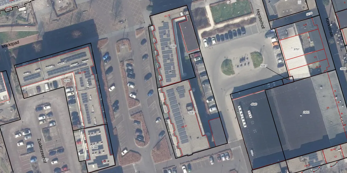 Het adres is gelegen op perceel 6087 in de sectie A en de kadastrale gemeente Zeewolde. De kadastrale aanduiding is aldus ZWD03-A-6087. Het perceel is kleiner dan gemiddeld in Zeewolde. Het perceel is 1390 m² groot, terwijl het gemiddelde ligt op 1,9 ha. Het grootste perceel in de kadastrale gemeente is 6,16 km². Het kleinste perceel heeft een oppervlakte van 0 m². Op het perceel liggen in totaal 15 adressen. In de Basisregistratie Kadaster (BRK) werden de grenzen van het perceel geregistreerd op 09-03-2021.