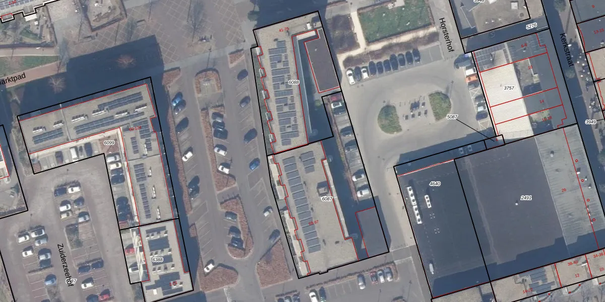 Het adres is gelegen op perceel 6087 in de sectie A en de kadastrale gemeente Zeewolde. De kadastrale aanduiding is aldus ZWD03-A-6087. Het perceel is kleiner dan gemiddeld in Zeewolde. Het perceel is 1390 m² groot, terwijl het gemiddelde ligt op 1,9 ha. Het grootste perceel in de kadastrale gemeente is 6,16 km². Het kleinste perceel heeft een oppervlakte van 0 m². Er zijn 15 adressen aanwezig op het perceel. De huidige grenzen van het perceel zijn digitaal in de Basisregistratie Kadaster (BRK) geregistreerd op 09-03-2021.