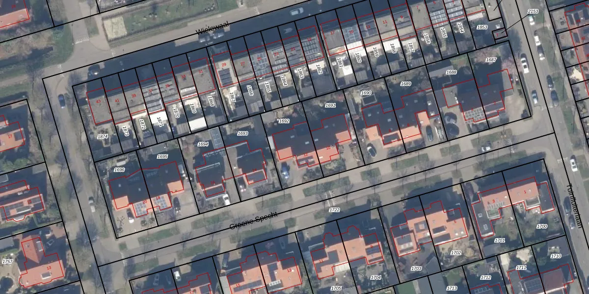Het perceel waarop Groene Specht 12 staat heeft een oppervlakte van 396 m². Dit is een groot perceel. De perceeloppervlakte wordt geregistreerd door het Kadaster. Gedetailleerde informatie over de maten van dit perceel kunt u vinden in het rapport Kadastrale kaart met maatvoering van Groene Specht 12.