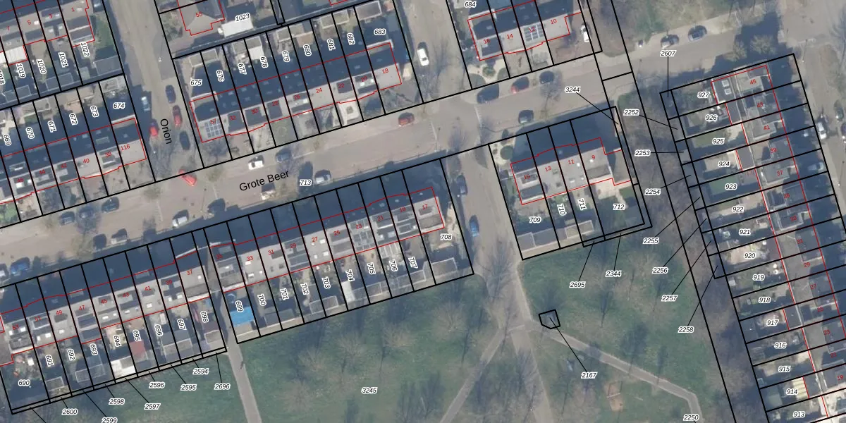 Gebruik de zoekbalk of klik op een perceel voor informatie over de adressen binnen dit perceel.