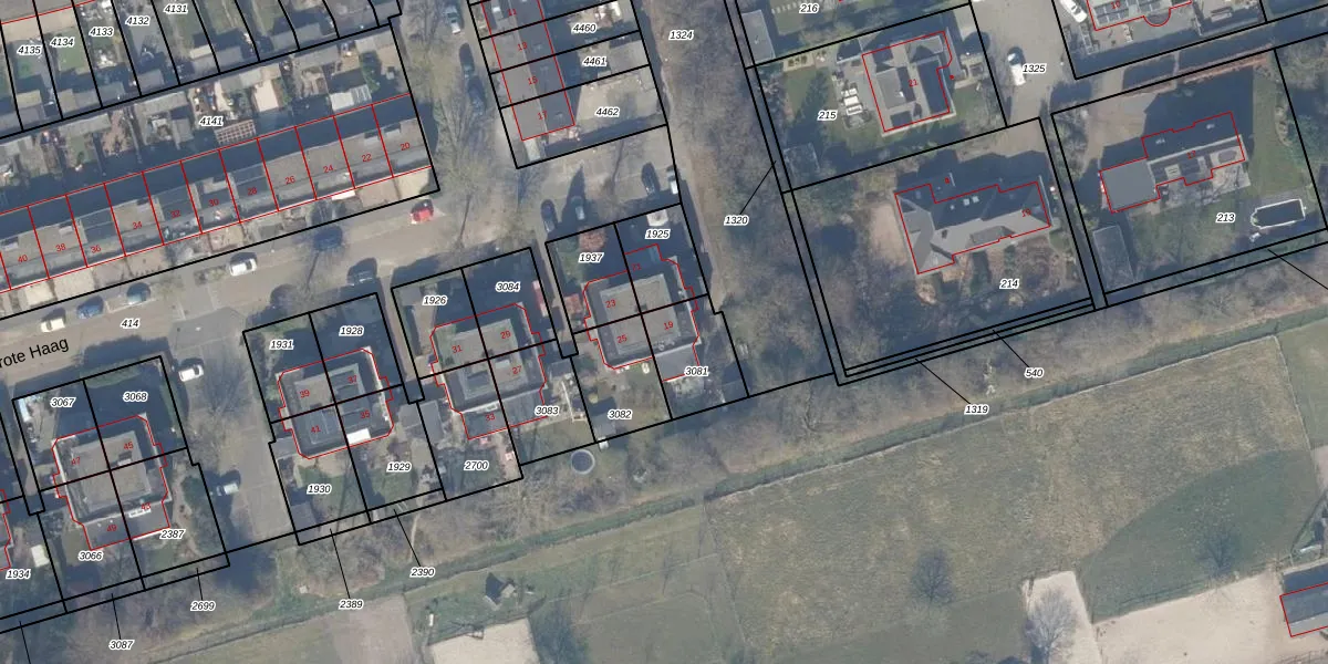 Het perceel waarop Grote Haag 19 staat heeft een oppervlakte van 195 m². Dit is een middelgroot perceel. De perceeloppervlakte wordt geregistreerd door het Kadaster. Gedetailleerde informatie over de maten van dit perceel kunt u vinden in het rapport Kadastrale kaart met maatvoering van Grote Haag 19.