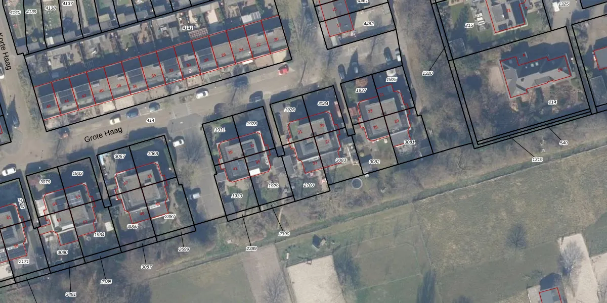 Het perceel waarop Grote Haag 33 staat heeft een oppervlakte van 224 m². Dit is een middelgroot perceel. De perceeloppervlakte wordt geregistreerd door het Kadaster. Gedetailleerde informatie over de maten van dit perceel kunt u vinden in het rapport Kadastrale kaart met maatvoering van Grote Haag 33.