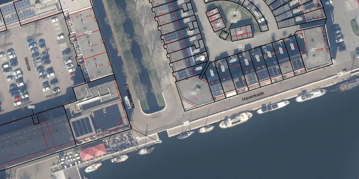 Het perceel waarop Havenkade 5 staat heeft een oppervlakte van 293 m². Dit is een middelgroot perceel. De perceeloppervlakte wordt geregistreerd door het Kadaster. Gedetailleerde informatie over de maten van dit perceel kunt u vinden in het rapport Kadastrale kaart met maatvoering van Havenkade 5.