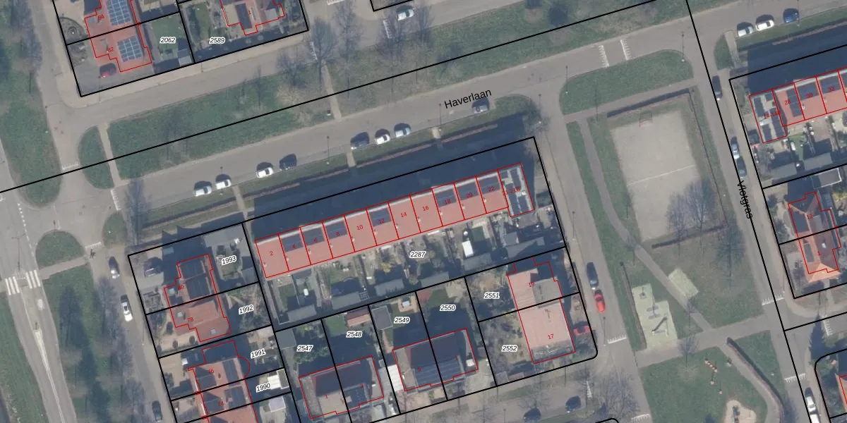 Haverlaan 16 is gelegen op kadastraal perceel ZWD03E2287. Deze kadastrale aanduiding is uniek en wordt gebruikt door het Kadaster om eigendomsrechten en andere zakelijke rechten vast te leggen. Het perceel maakt onderdeel uit van de kadastrale gemeente Zeewolde.