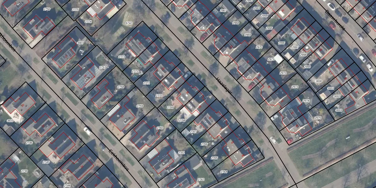 Gebruik de zoekbalk of klik op een perceel voor informatie over de adressen binnen dit perceel.