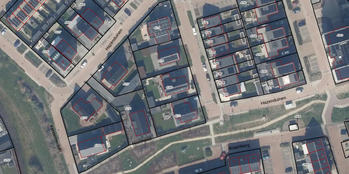 Het perceel waarop Hazenduinen 3 staat heeft een oppervlakte van 495 m². Dit is een groot perceel. De perceeloppervlakte wordt geregistreerd door het Kadaster. Gedetailleerde informatie over de maten van dit perceel kunt u vinden in het rapport Kadastrale kaart met maatvoering van Hazenduinen 3.