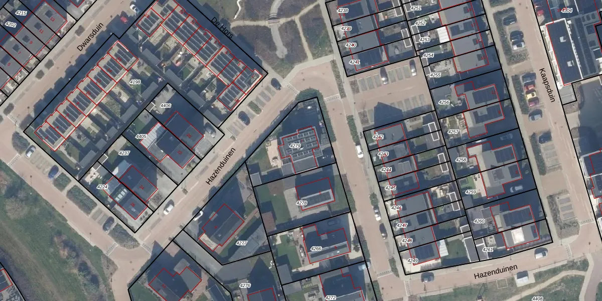 Het perceel waarop Hazenduinen 7 staat heeft een oppervlakte van 503 m². Dit is een groot perceel. De perceeloppervlakte wordt geregistreerd door het Kadaster. Gedetailleerde informatie over de maten van dit perceel kunt u vinden in het rapport Kadastrale kaart met maatvoering van Hazenduinen 7.