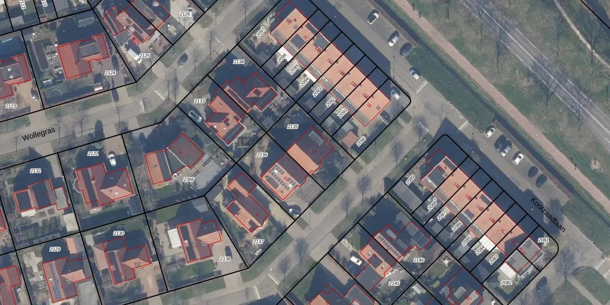 Gebruik de zoekbalk of klik op een perceel voor informatie over de adressen binnen dit perceel.