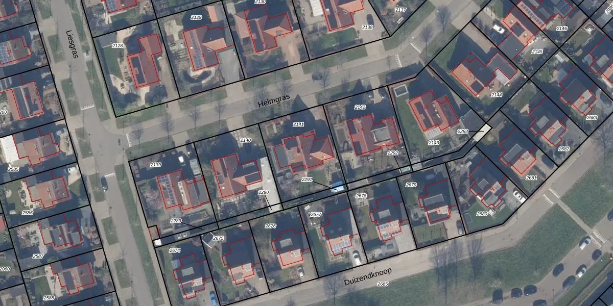 Het perceel waarop Helmgras 6 staat heeft een oppervlakte van 593 m². Dit is een groot perceel. De perceeloppervlakte wordt geregistreerd door het Kadaster. Gedetailleerde informatie over de maten van dit perceel kunt u vinden in het rapport Kadastrale kaart met maatvoering van Helmgras 6.