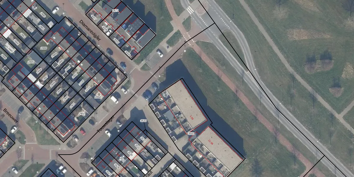 Het adres is gelegen op perceel 3542 in de sectie E en de kadastrale gemeente Zeewolde. De kadastrale aanduiding is aldus ZWD03-E-3542. Het perceel is kleiner dan gemiddeld in Zeewolde. Het perceel is 1410 m² groot, terwijl het gemiddelde ligt op 1,9 ha. De grootste perceeloppervlakte in de kadastrale gemeente is 6,16 km². De kleinste oppervlakte bedraagt 0 m². Er zijn 20 adressen aanwezig op het perceel. De laatste wijziging in het de Basisregistratie Kadaster (BRK) was op 12-03-2015.