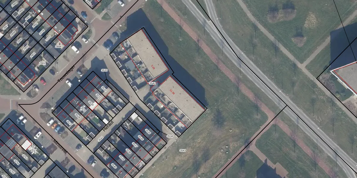 Het perceel waarop Heraut 13 staat heeft een oppervlakte van 1410 m². Dit is een zeer groot perceel. De perceeloppervlakte wordt geregistreerd door het Kadaster. Gedetailleerde informatie over de maten van dit perceel kunt u vinden in het rapport Kadastrale kaart met maatvoering van Heraut 13.