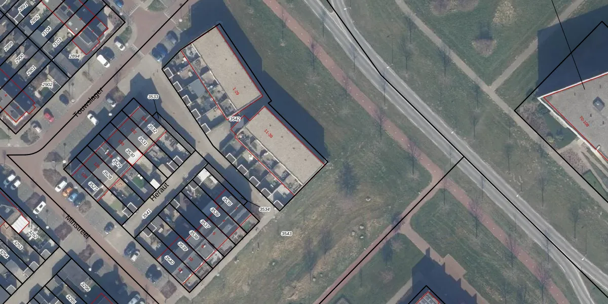 Het perceel waarop Heraut 17 staat heeft een oppervlakte van 1410 m². Dit is een zeer groot perceel. De perceeloppervlakte wordt geregistreerd door het Kadaster. Gedetailleerde informatie over de maten van dit perceel kunt u vinden in het rapport Kadastrale kaart met maatvoering van Heraut 17.