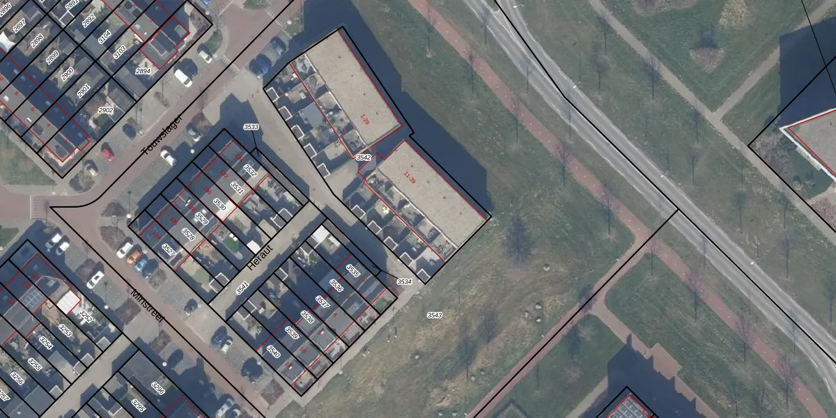 Het perceel waarop Heraut 35 staat heeft een oppervlakte van 1410 m². Dit is een zeer groot perceel. De perceeloppervlakte wordt geregistreerd door het Kadaster. Gedetailleerde informatie over de maten van dit perceel kunt u vinden in het rapport Kadastrale kaart met maatvoering van Heraut 35.