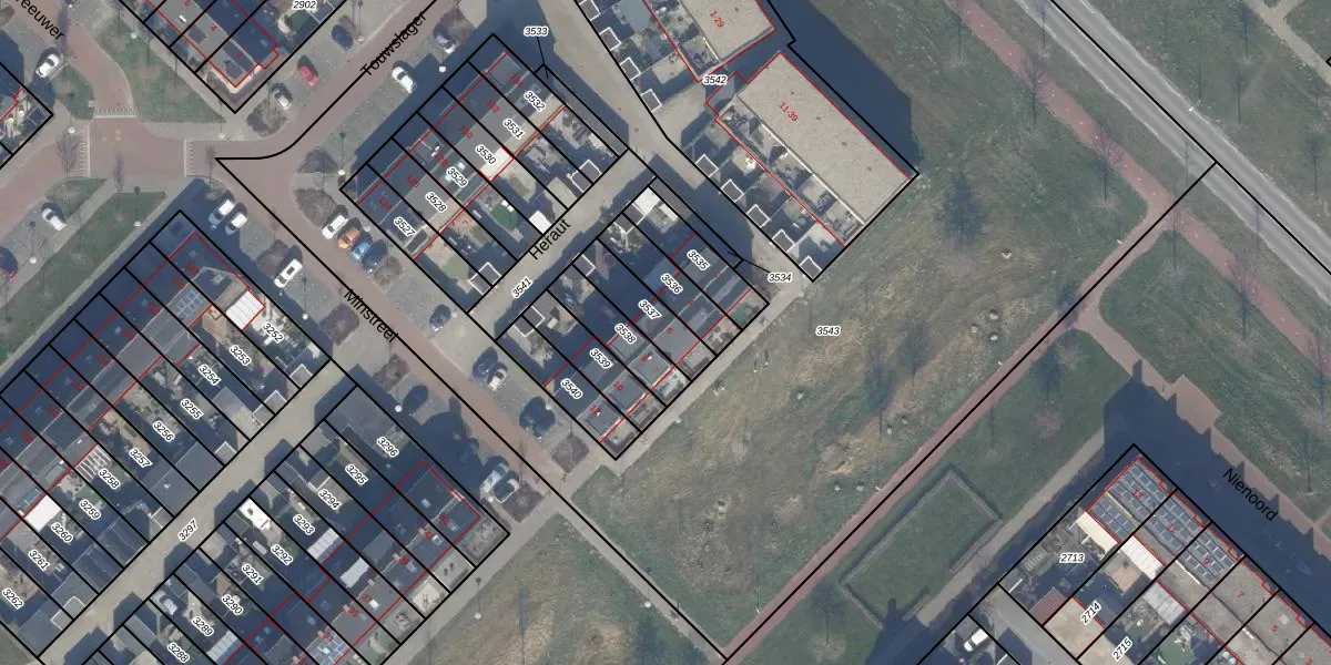 Het perceel waarop Heraut 6 staat heeft een oppervlakte van 137 m². Dit is een middelgroot perceel. De perceeloppervlakte wordt geregistreerd door het Kadaster. Gedetailleerde informatie over de maten van dit perceel kunt u vinden in het rapport Kadastrale kaart met maatvoering van Heraut 6.